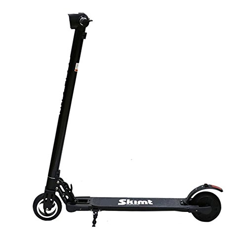 La Trottinette électrique Skimt eCity est équipée d’un Moteur 250W et d’une Batterie Lithium LG 36V 8Ah. Vitesse maxi : 25 km/h. Autonomie : 10-15 km